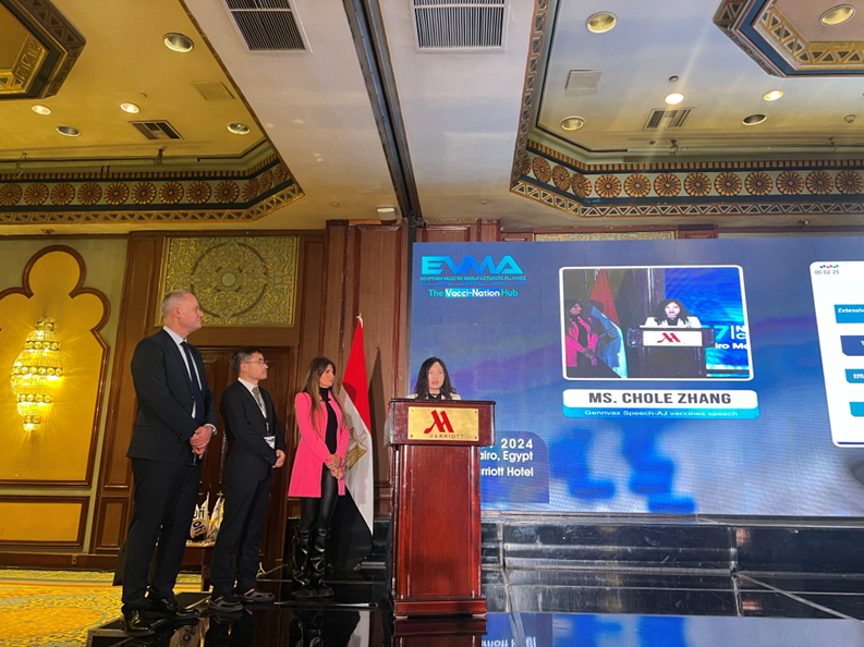 j9九游会生物国际事业部总经理张骞在签约现场致辞,她表示:j9九游会民海作为中国领先的疫苗制造商之一,自2023年起与GENNVAX建立了良好的合作伙伴关系,双方愿通过疫苗合作项目共同支持EVMA计划,携手推动民海生物自主研发的“双载体”13价肺炎疫苗及五联疫苗向埃及的技术转移,为当地加强疫苗本土化生产能力做出贡献,并进一步赋能非洲疫苗产业链建设,实现区域协同化发展,造福更多民众健康。